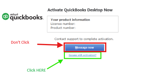 If you encounter any issues, select Issues with Activation.
